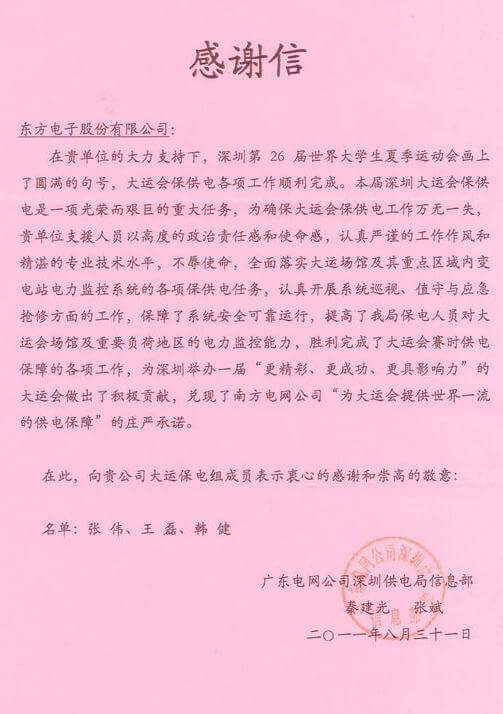 公司圆满完成大运会保供电重任