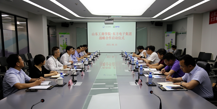6月15日,山东工商学院校长杨同毅带队,校方科研处处长、工商管理学院、会计学院、计算机科学与技术学院、信息与电子工程学院、数学与信息科学学院院长一行到集团公司交流。双方共同签署了战略合作协议,并举办了“产教融合基地”和“教学与就业实践基地”的揭牌仪式。公司党委书记、董事长、总经理杨恒坤,集团公司党委副书记、工会主席李成山以及股份公司、海颐公司和东方精进学院相关代表出席了本次启动仪式。