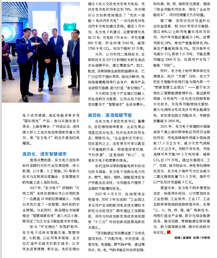 除为“平安烟台”保驾护航外,云联商城还涉足智能交通、智慧物流、大数据、云应用等多领域,全方位打造平安城市和数字城市,让市民生活更便捷、更安全。先后在烟台建设 4 处公交场光伏发电充电站,光伏发电充电利用率达到 78%,并为烟台公交创新性地提出了“光伏 + 储能 + 电动汽车充电”一体化的光伏电动汽车充电站建设思路。截至 1 月中旬,云联商城共建设、运营管理充电站 22 处、充电桩 170 余台,年充电量600 万度,折合标煤 2160 吨,减排5788.8 吨 CO2,相当于植树 32 万棵。