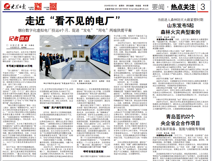 2023年11月22日,由云联商城开发建设的国内首个城市级数字化虚拟电厂——烟台市数字化虚拟电厂投入运行。运行近4个月来,虚拟电厂取得了哪些进展?记者日前进行了探访。